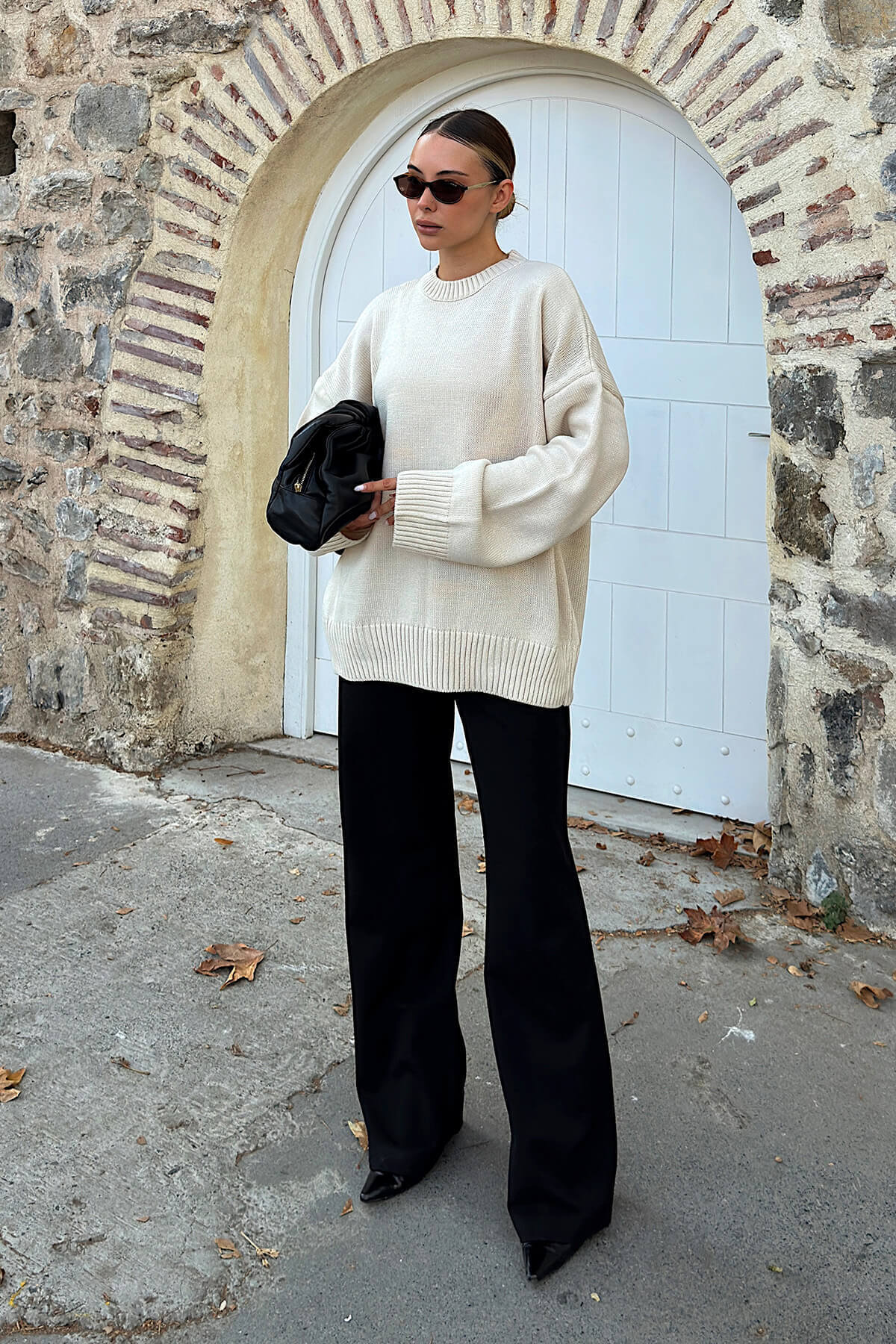 Sade düz, rahat ve kalın bisiklet yaka oversize kadın triko kazaklar, modern kadınların gardırobunda vazgeçilmez bir parça olarak öne çıkıyor. Minimalist tasarımıyla her tarza kolayca uyum sağlayan bu kazaklar, sağlam ve kaliteli triko kumaşı sayesinde soğuk havalarda mükemmel bir sıcaklık sunar. Oversize kesimi, salaş ve şık bir görünüm kazandırırken, bisiklet yaka detayı feminen ve zarif bir dokunuş ekler. Rahat kesimi sayesinde gün boyu konforlu bir kullanım deneyimi sunan bu kazaklar, jeanler, taytlar veya eteklerle kolayca kombinlenebilir. Sade ve düz renk seçenekleri, her mevsim ve her ortama uygun esneklik sağlar. Hem günlük hayatta hem de özel davetlerde şıklığınızı korumanıza yardımcı olan sade düz rahat kalın bisiklet yaka oversize kadın triko kazaklar, uzun ömürlü kullanım ve dayanıklılık sunar. Gardırobunuza ekleyeceğiniz bu özel parçalarla, stilinizi hem koruyun hem de modern bir dokunuşla yenileyin.