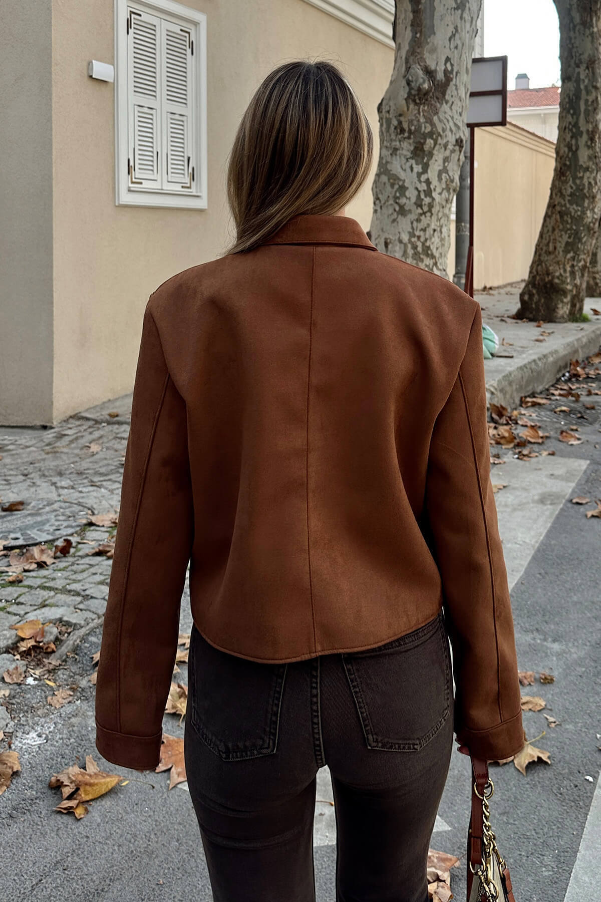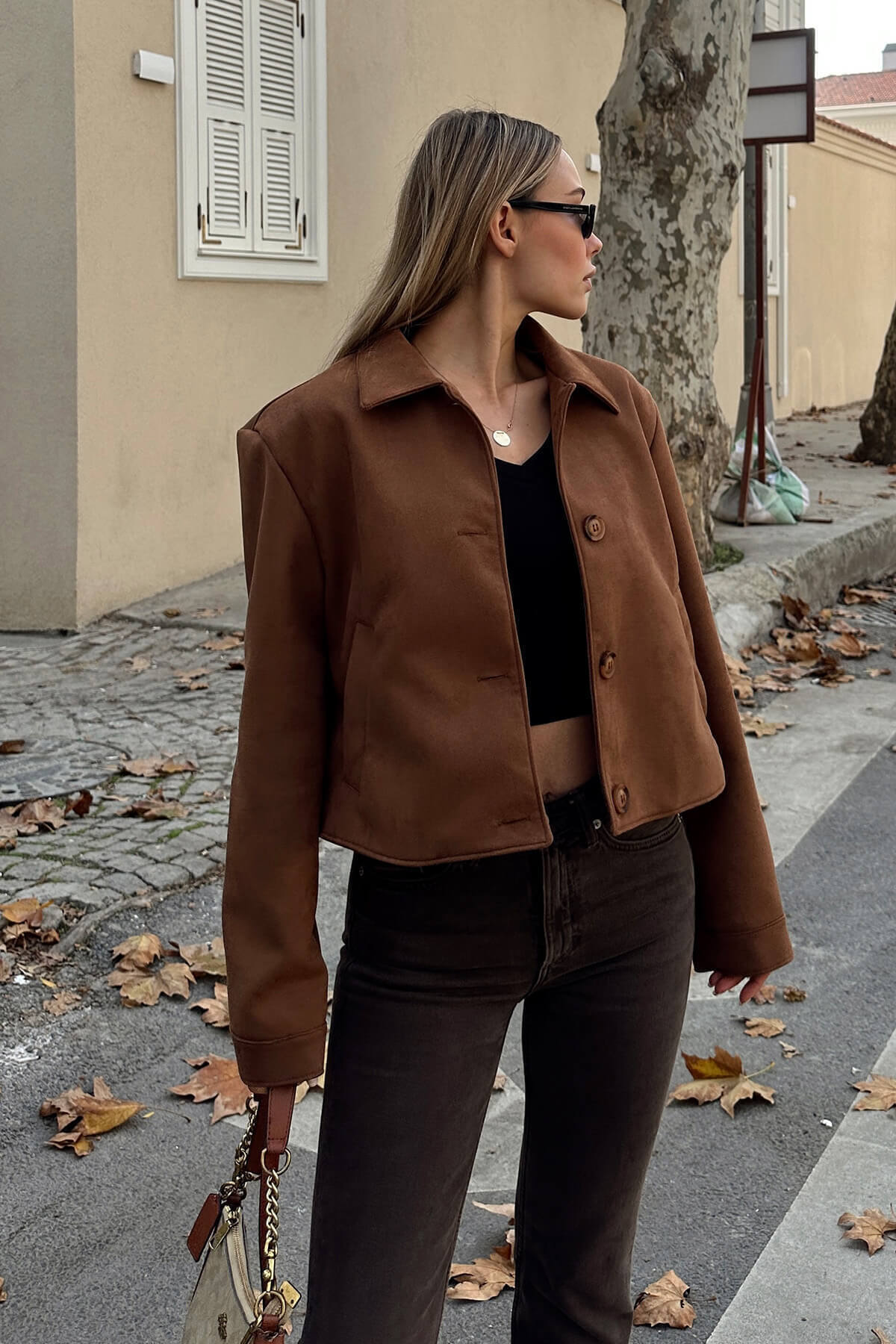 Süet polo yaka, düğme kapamalı kadın crop mont, şehirli ve şık bir dış giyim parçasıdır. Süet dokusu dış yüzeye ince bir lüks hissi katarken yumuşak iç astar konforu artırır. Polo yaka detayı, montun sport-chic duruşunu dengeler; düğme kapama ise temiz ve nostaljik bir görünüm sunar. Crop boy kesim yüksek bel parçalarla mükemmel uyum sağlar; etek veya yüksek bel pantolonlarla modern kombinler yaratır. Manşet ve omuz dikişleri özenle işlenmiş; hafif dolgulu yapı rüzgarı keser ve formu dengeler. Gizli cepler ve iç cep küçük eşyalar için pratiklik sağlar. Su itici yüzey işlemeli versiyonlar hafif yağışlarda da kullanım kolaylığı sunar. Farklı renk ve beden alternatifleriyle sunulan model, günlük şehir kombinlerinden akşam buluşmalarına kadar çok yönlüdür. Kolay bakım talimatları ve kaliteli malzeme seçimi ile uzun ömür vaat eder; zamansız ve göz alıcı bir yatırım parçasıdır. Şıklığı ve konforu bir arada sunarak gardırobunuzun favori parçalarından biri olacaktır Her mevsim tercih edilebilir Tavsiye ederiz kesinlikle göz.
