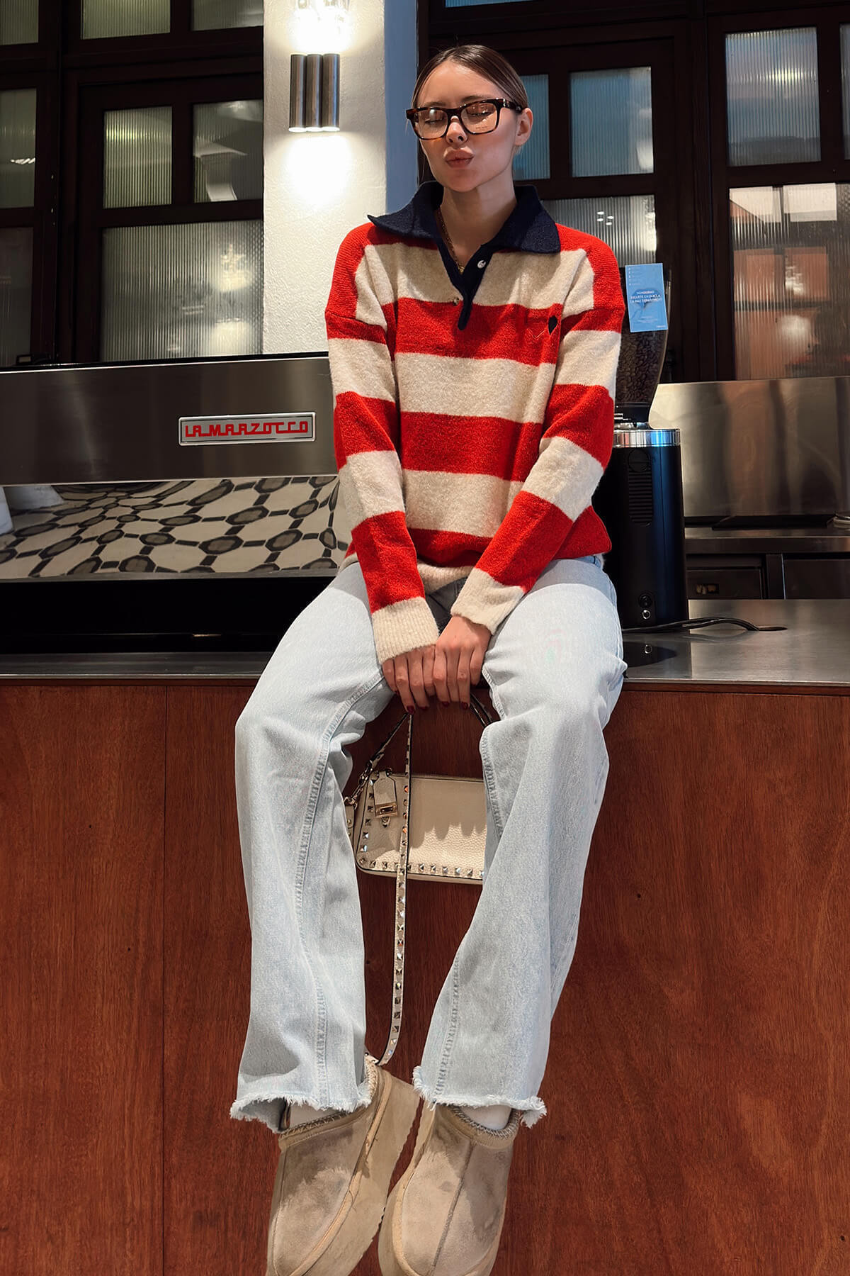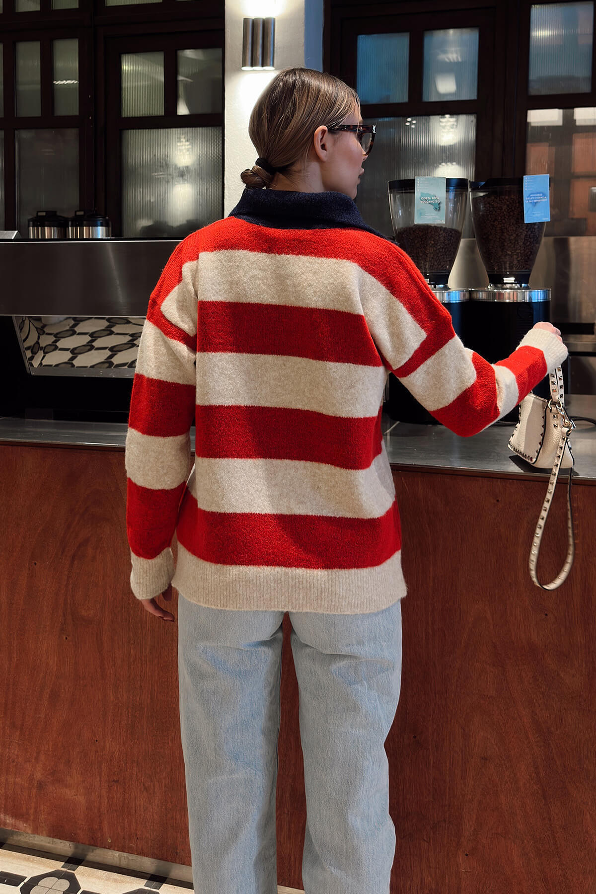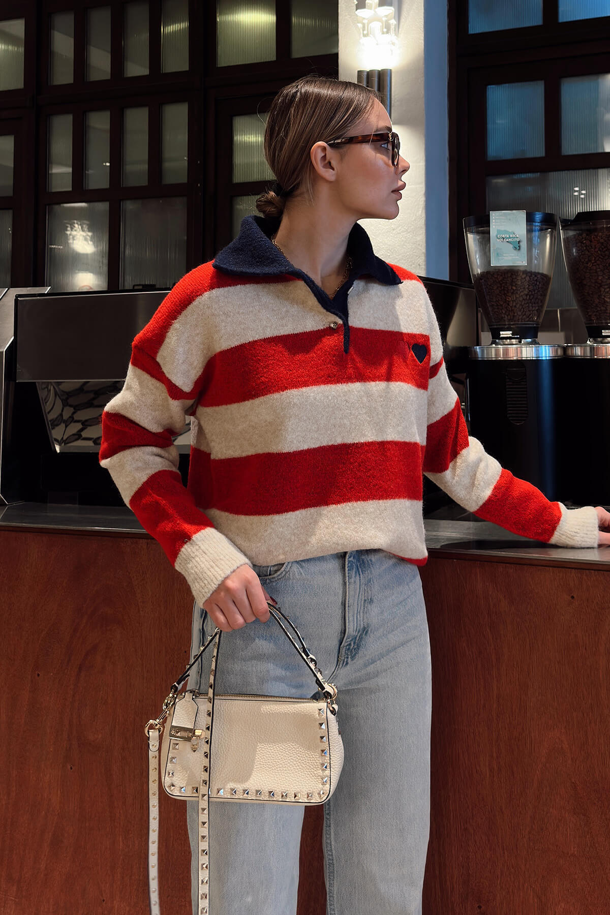 • Polo Yaka Garnili Kalın Çizgili Kalp Nakışlı Kadın Triko Kazak, klasik triko tasarımını modern ve enerjik detaylarla buluşturan özel bir parçadır. Polo yaka formu, kazak modeline sportif ve şık bir hava kazandırırken garnili yapısı tasarıma hareket katar. Kalın çizgili desen, güçlü bir görsel etki oluştururken kazak formuna dinamik bir duruş kazandırır. Göğüs kısmında yer alan kalp nakış detayı, modele feminen ve sıcak bir dokunuş ekleyerek stilin karakterini güçlendirir. Triko kumaşın kalın ve yumuşak dokusu, serin ve soğuk havalarda konforlu bir kullanım sunar. Günlük kombinlerden şehir stiline kadar geniş bir kullanım alanına sahip olan bu kadın triko kazak; jean pantolonlar, etekler ve kumaş pantolonlarla kolayca kombinlenebilir. Zamansız çizgili desen ve zarif nakış detaylarıyla sezon trendlerine uyum sağlayan bu kazak, rahatlığı ve şıklığı bir arada sunan güçlü bir gardırop parçasıdır.