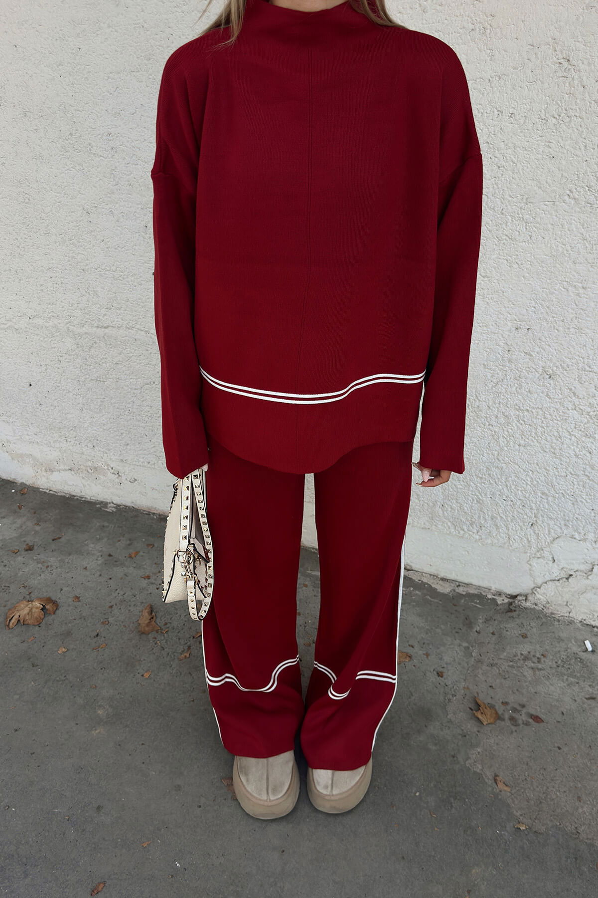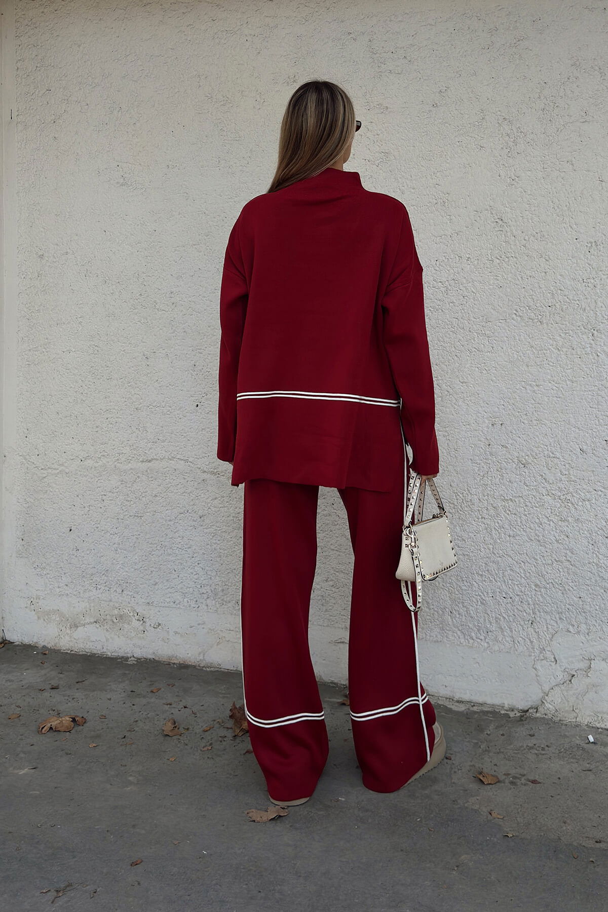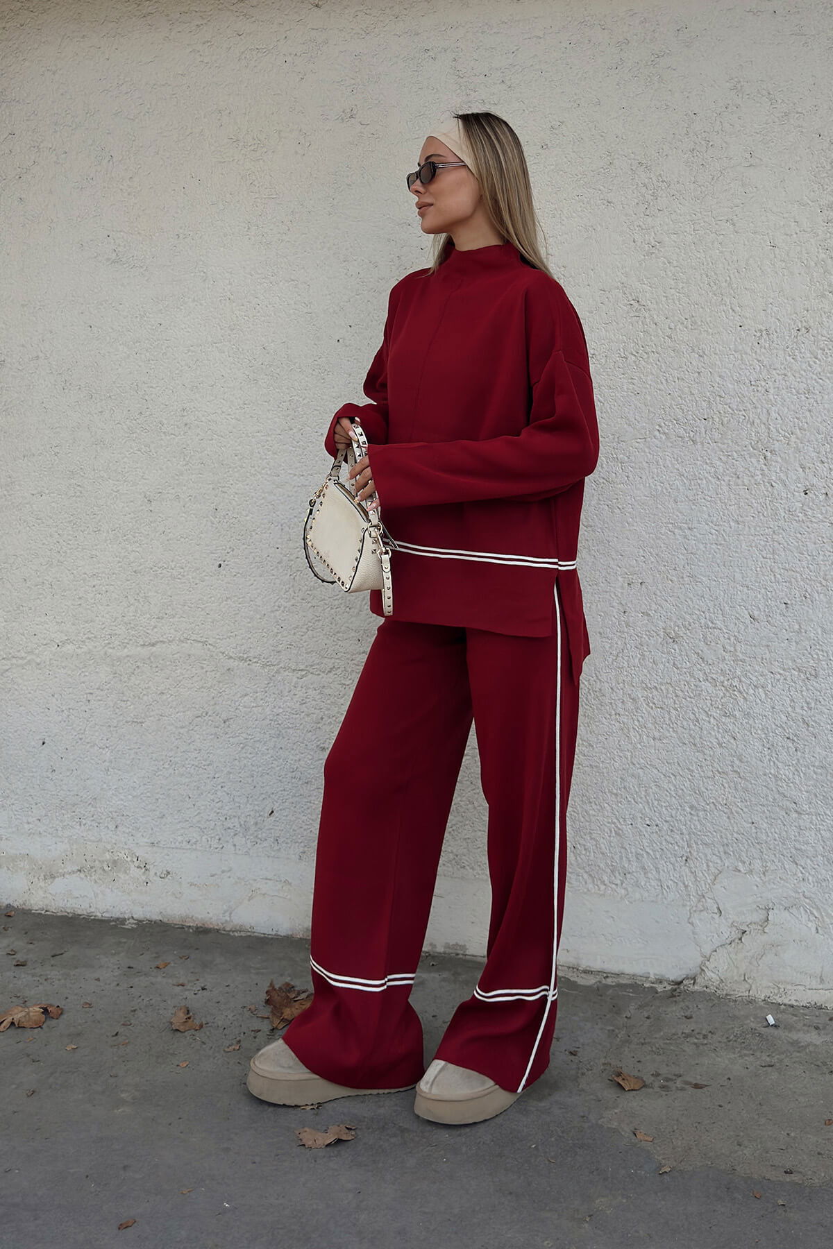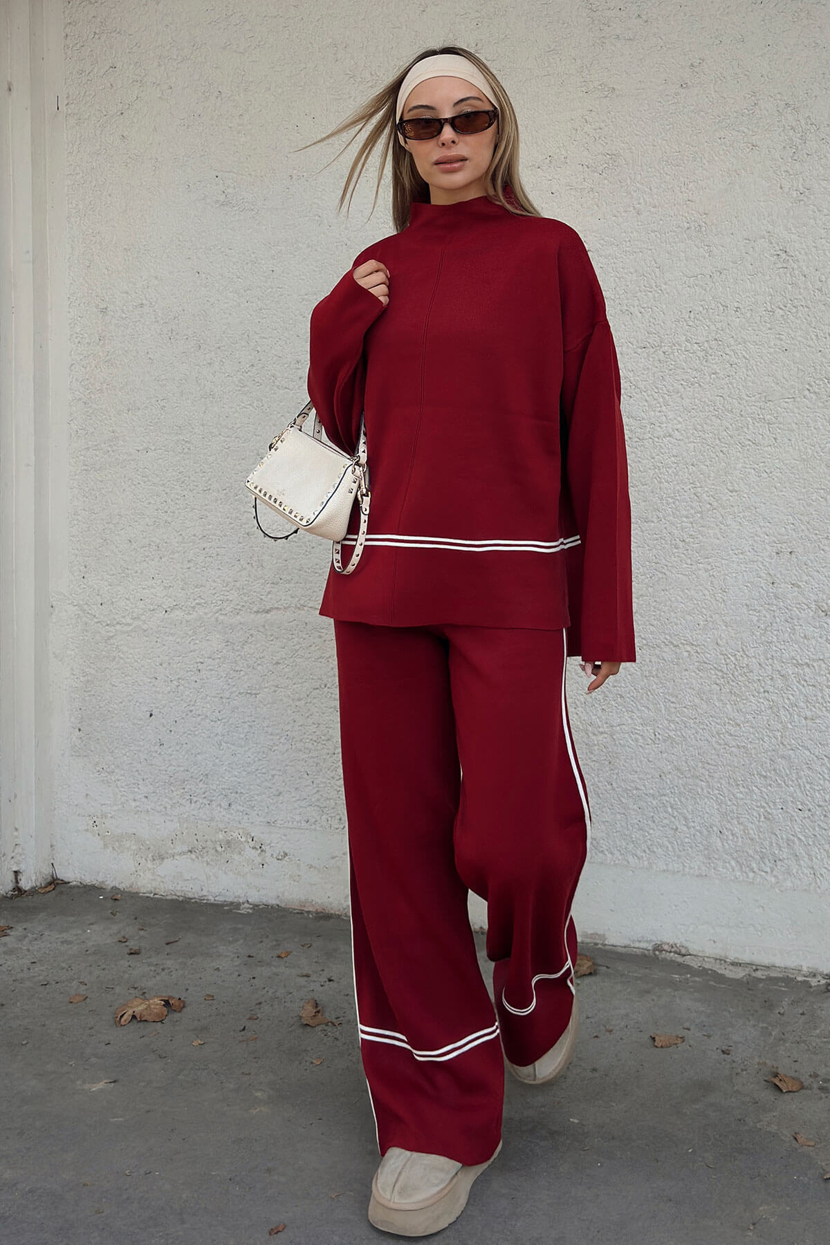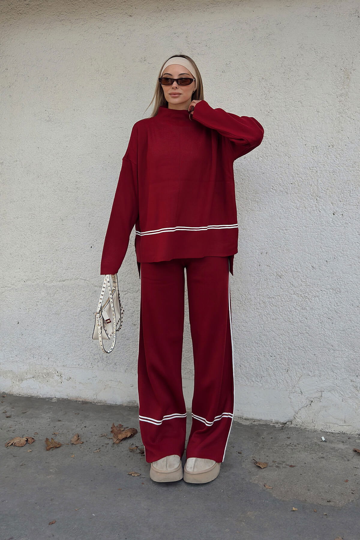 Şerit detaylı, dik yaka ve arkası uzun yırtmaçlı kazak ile uyumlu triko pantolon takımımız, modern ve zarif bir görünüm sunar. Yumuşak örme dokusu ve hafif elastan karışımı sayesinde takım, vücuda nazikçe uyum sağlar ve gün boyu konfor vaat eder. Dik yaka tasarımı boyun hattını sıcak tutar; arkası uzun ve yırtmaçlı kesim ise hareket anında şık bir akış yaratır. Ön yüzündeki şerit detaylar modele dinamik bir vurgu katar; hem minimalist hem de dikkat çekici kombinler oluşturur. Pantolonun yüksek belli düz kesimi bele oturur; iç lastikli kemer kullanım kolaylığı sunar. Ribana manşet ve etek ucu form korur; kaliteli dikişler dayanıklılığı artırır. Orta kalınlıktaki triko örümü mevsim geçişleri için idealdir ve katmanlamaya uygundur. Çeşitli renk seçenekleriyle sunulan takım, palto veya uzun yeleklerle kolayca tamamlanır. Kolay bakım talimatları ve özenli malzeme seçimi sayesinde ürün uzun süre ilk günkü görünümünü korur. Şıklığı ve konforu bir arada sunarak gardırobunuzun favori parçalarından.