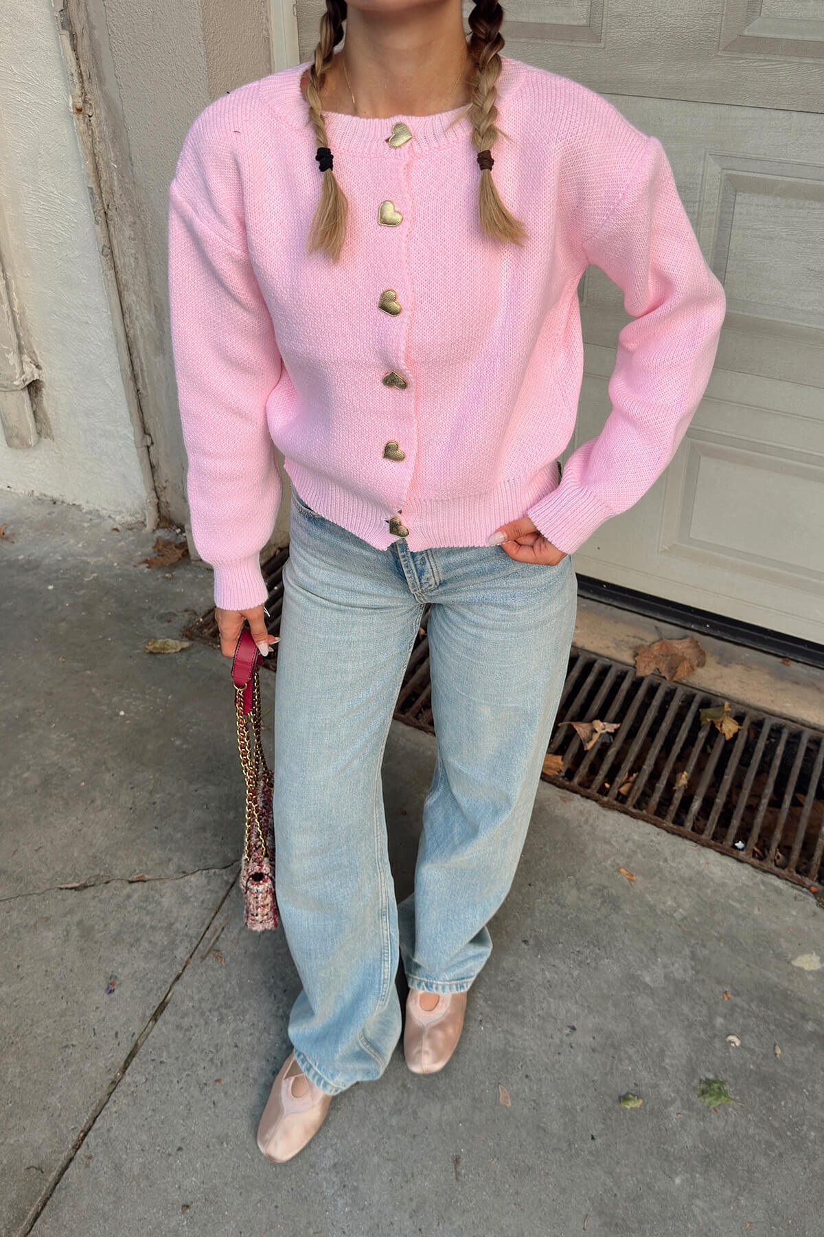 Pembe Heart Gold Kalp Düğmeli Kadın Triko Hırka - 1