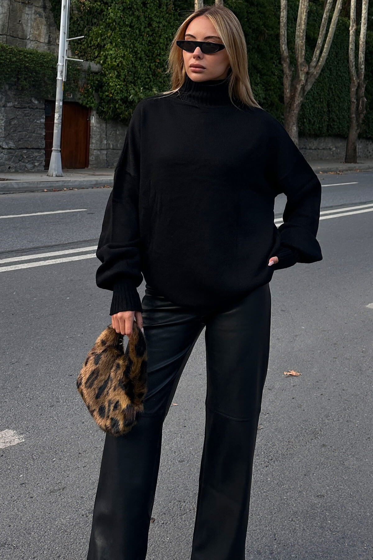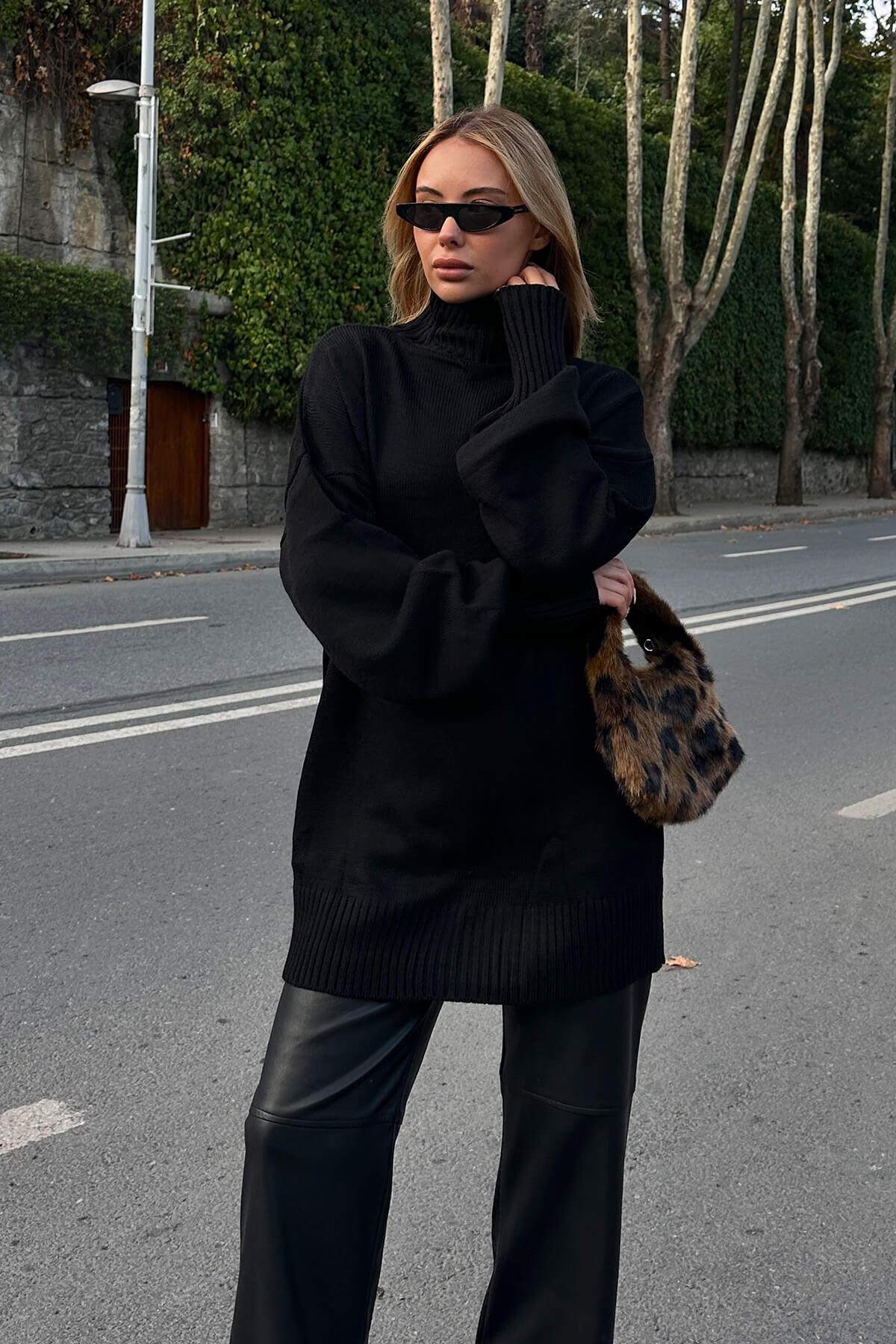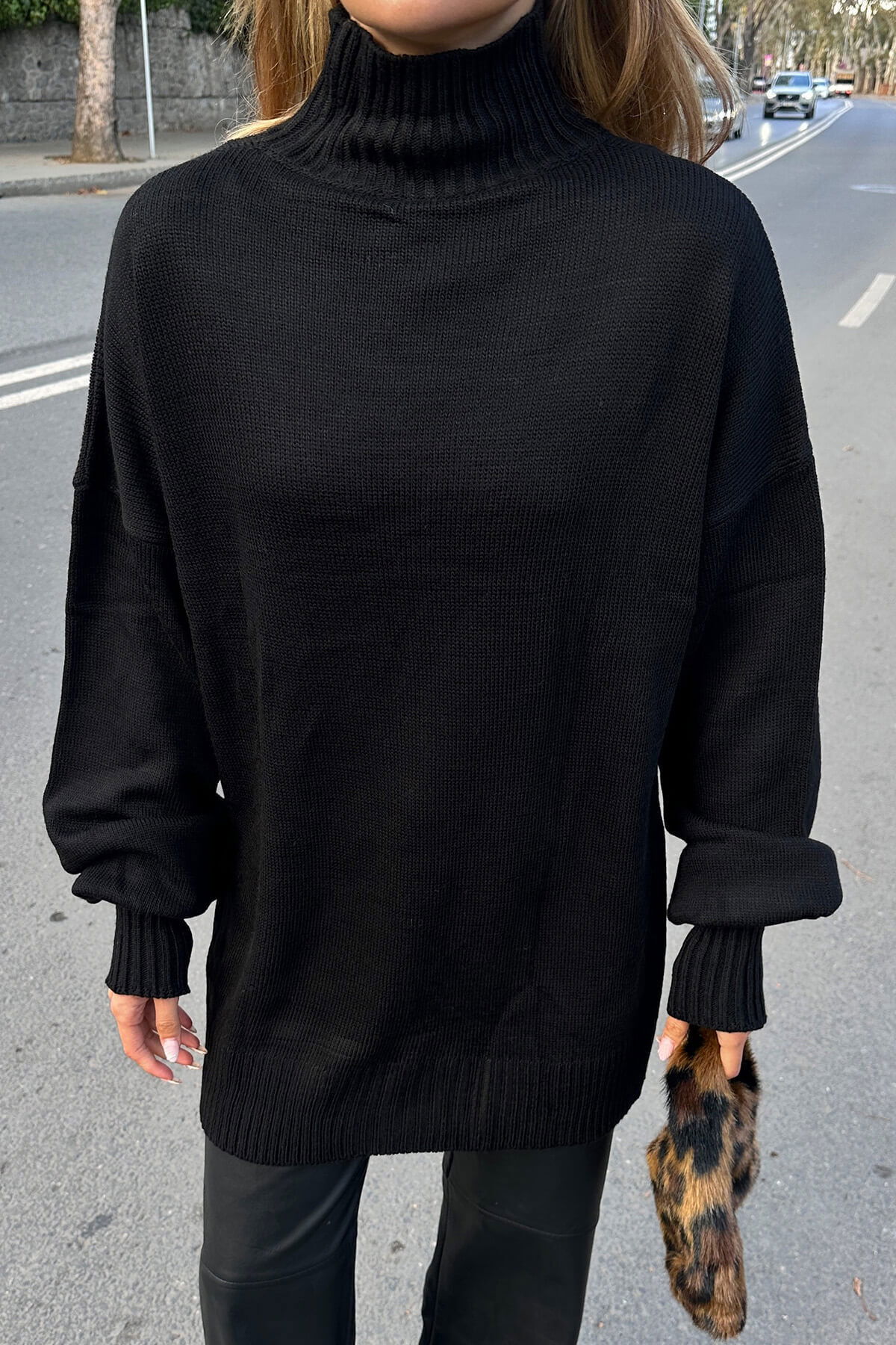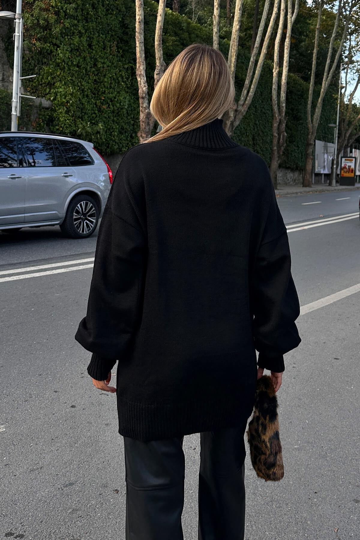 Siyah Manşet Detaylı Yarım Balıkçı Kadın Triko Kazak