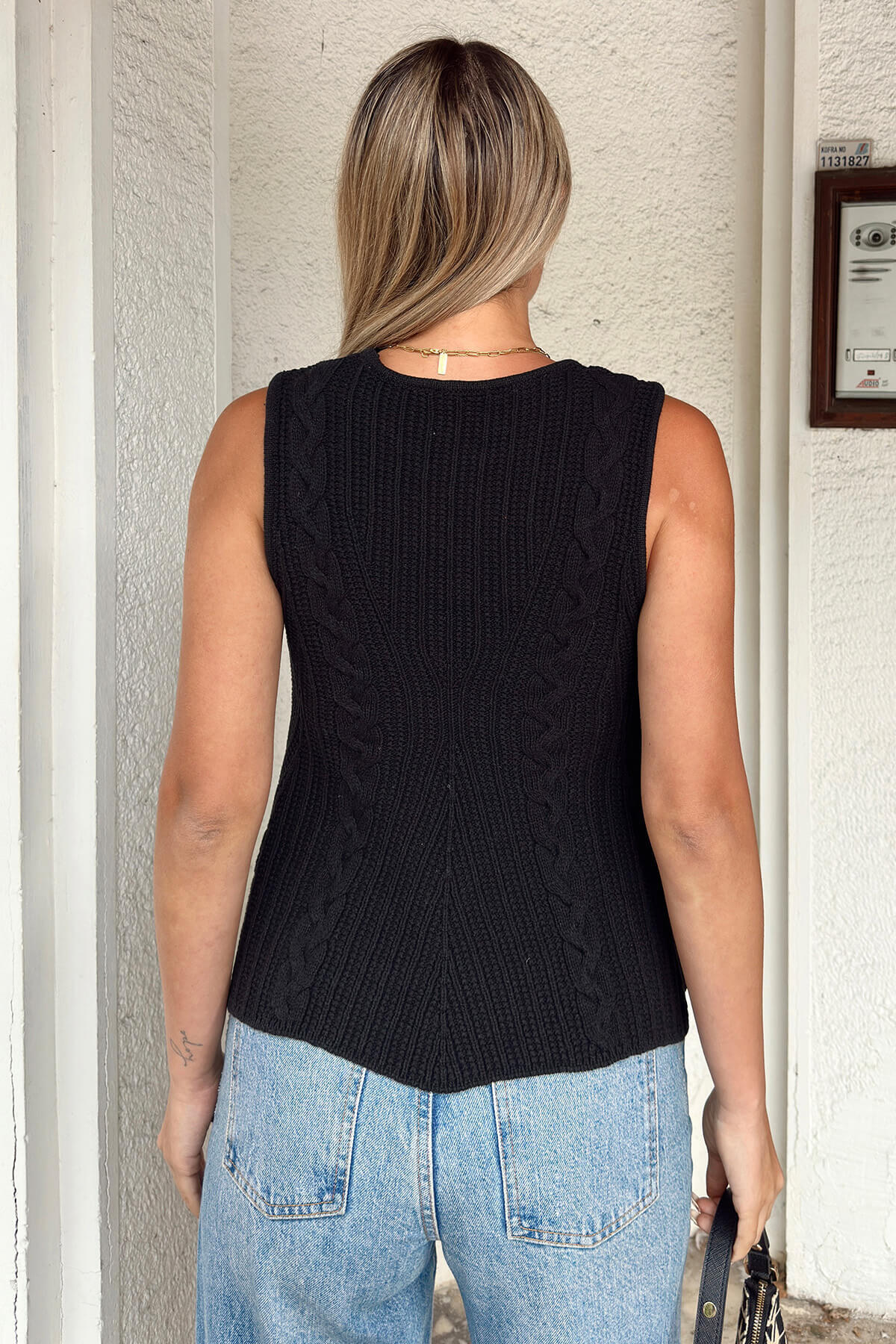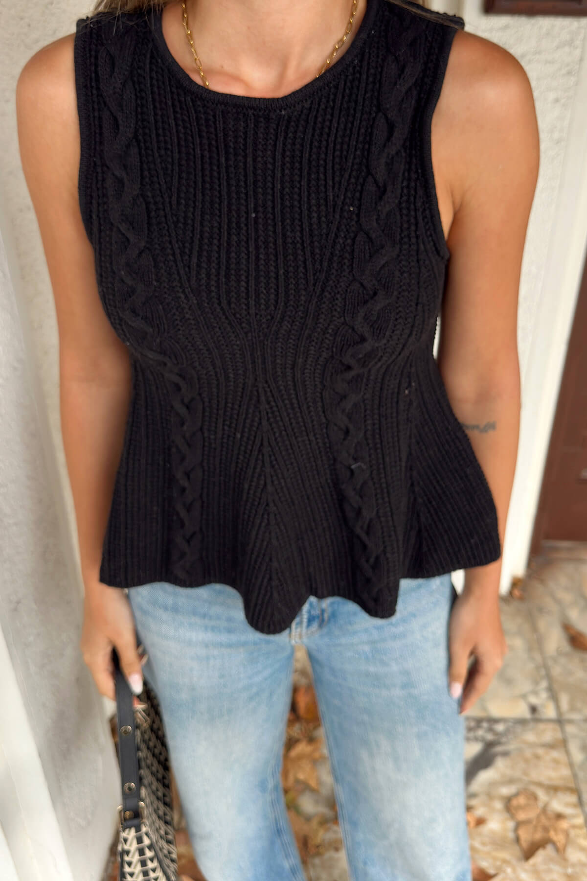 Siyah Volanlı Saç Örgü Bisiklet Yaka Kadın Triko Süveter