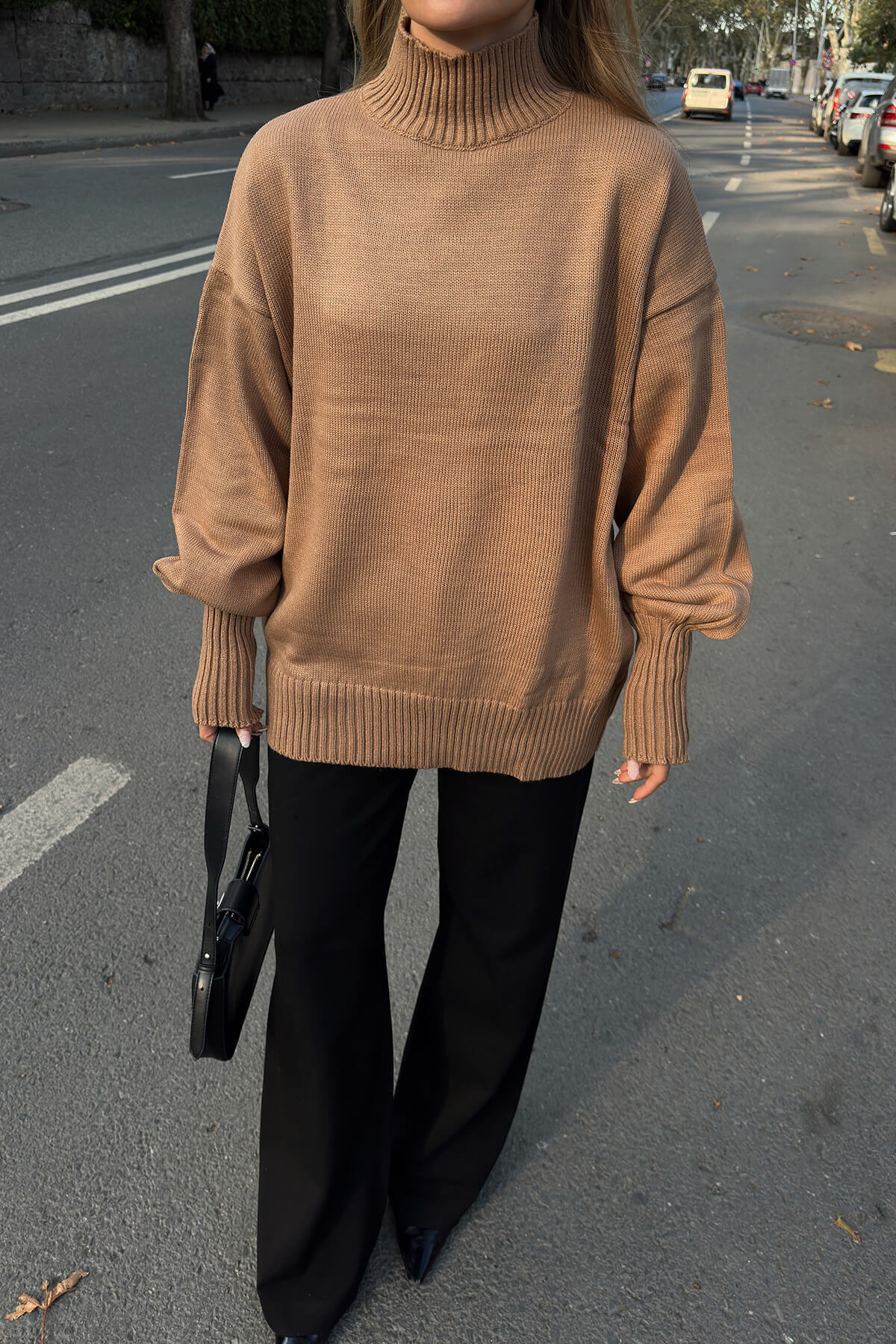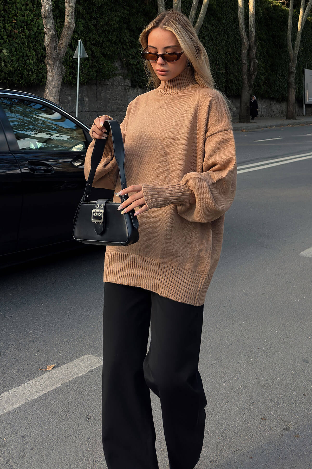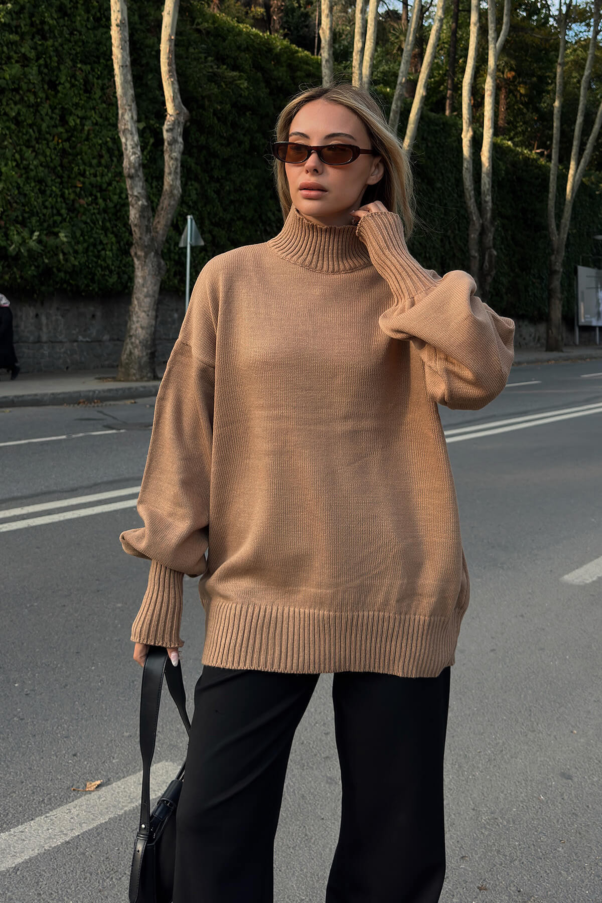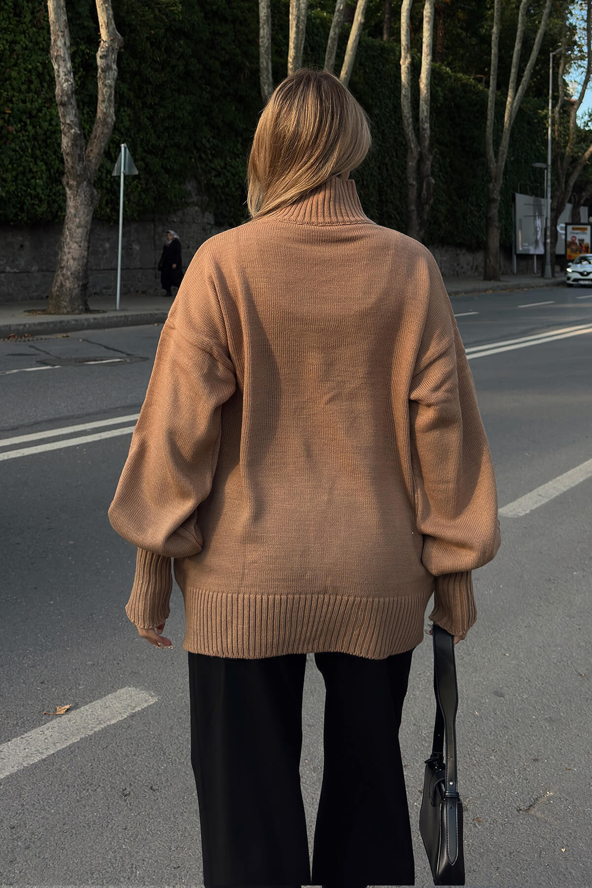 Vizon Manşet Detaylı Yarım Balıkçı Kadın Triko Kazak