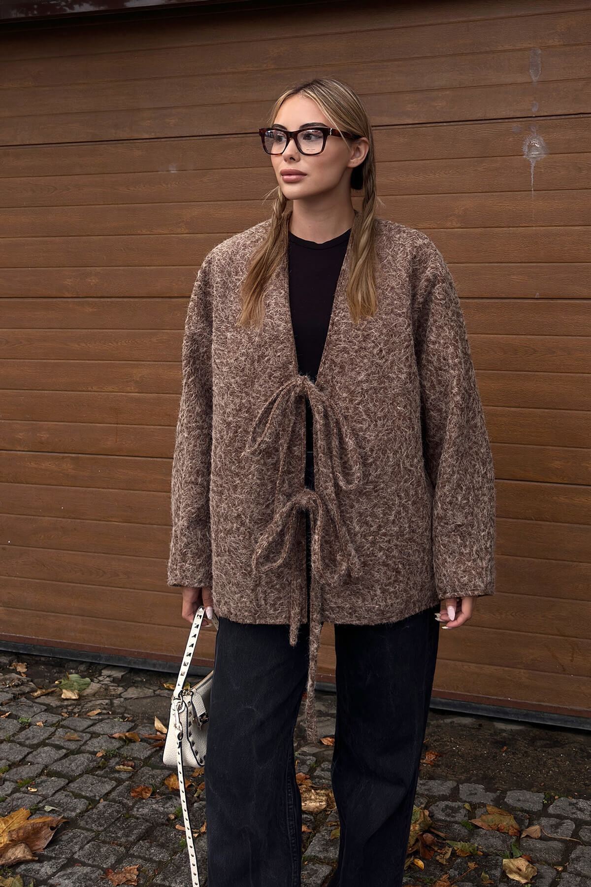• Oversize bağlama detaylı kadın yün kaşe ceket; şehirli ve rahat şıklığı bir arada sunar. Yün karışımlı kaşe kumaşı soğuk havalarda mükemmel ısı yalıtımı sağlarken, dış yüzeydeki ince doku ceketlere sofistike bir görünüm katar. Oversize kesim serbest hareket imkanı verir, katmanlama için idealdir; beldeki bağlama detayı ise silueti dilediğiniz gibi şekillendirmenize olanak tanır. Geniş yakası ve temiz dikişleri zamansız bir estetik sunar;  Ofisten hafta sonuna geçişlerde kolayca kombinleyebileceğiniz bu model, kot veya takım pantolonlarla dengeli durur. Renk seçenekleri genelde nötr tonlar olup, mevsim geçişlerinde gardırobunuzun ana parçası haline gelir. Uzun ömür için nazik kurutma ve kuru temizleme önerilir. İnce işçilik ve kaliteli kaşe ile tasarlanan bu ceket, sade ama etkileyici bir yatırım parçasıdır. İç astarı nefes alabilen polyester karışımlıdır, her sezon trendlerle uyum sağlar.