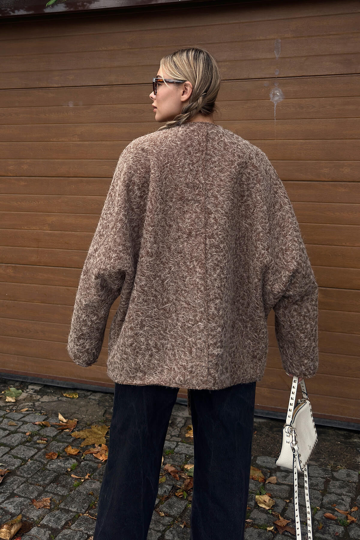 Vizon Oversize Bağlama Detaylı Kadın Yün Kaşe Ceket - 1