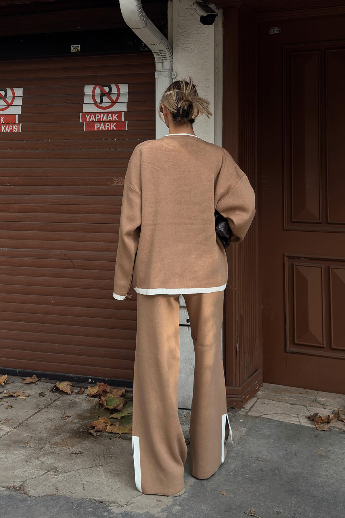 Vizon Uma İntersiye Çizgili Yırtmaçlı Oversize Kazak-Pantolon Kadın Triko Alt-Üst Takım - 5